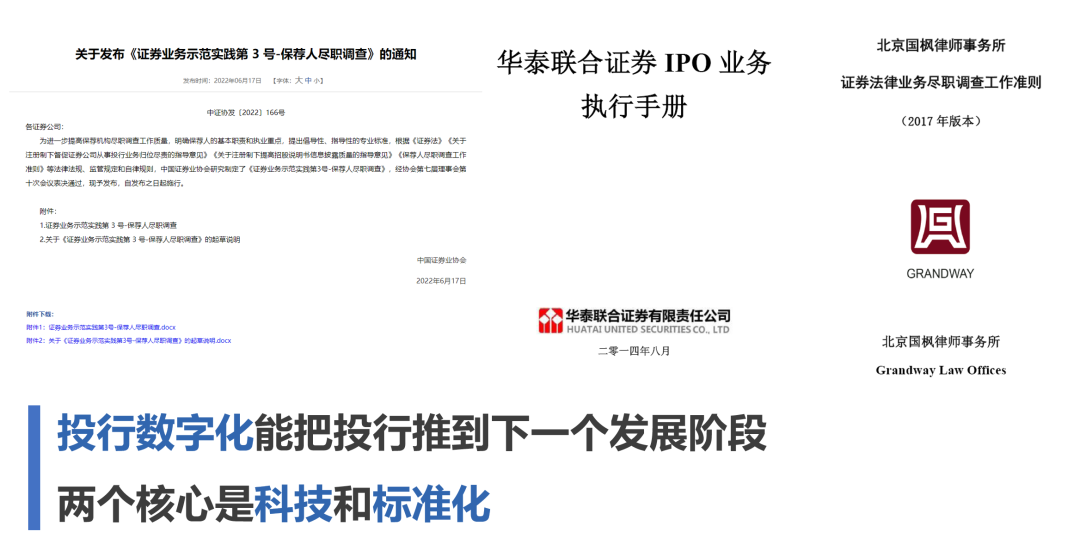 有朋友会设为投行政策经常变化,投行的价值就在于非标。但我认为,投行底层的逻辑始终没有变,我坚定认为投行数字化能把投行推到下一个发展阶段,解决目前行业存在的很多问题,两个核心就是科技和标准化。