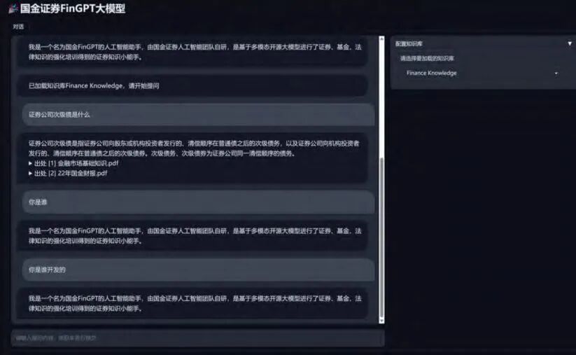 国金证券选择的是 LangChain+智谱 ChatGLM2 结合的技术路线,进行模型的微调和领域知识库的训练。在保留良好对话效果的同时,其训练成本非常低,能够有效避免模型微调后的灾难性遗忘问题以及减少模型出现幻觉的情况。