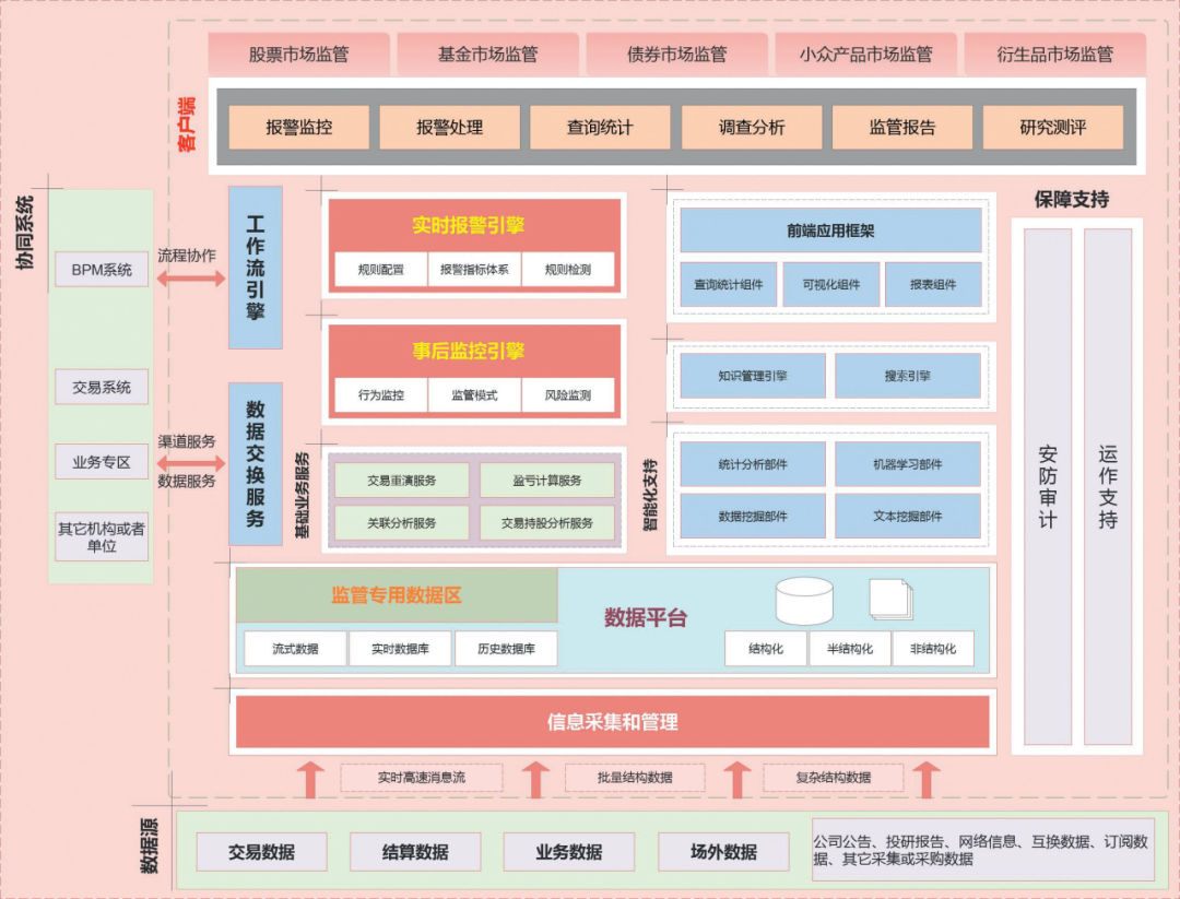 监管科技 3.0(智能监管,2017 至今):建设一个运转高效的监管大数据平台,综合运用电子预警、统计分析、数据挖掘等数据分析技术,围绕资本市场的主要生产和业务活动,进行实时监控和历史分析调查,辅助监管人员对市场主体进行全景式分析、实时对市场总体情况进行监控监测,及时发现涉嫌内幕交易、市场操纵等违法违规行为,履行监管职责,维护市场交易秩序。