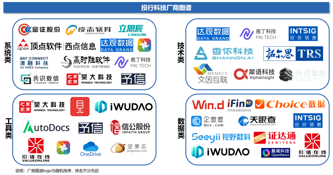 多种利好因素叠加下,许多投行非系统类厂商在 14 至 17 年陆续成立,这些公司基本是目前的主流厂商,可以分为三类: