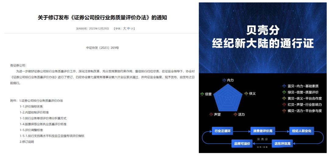 针对从业人员个人 。可参考贝壳经纪人信用评价体系的建设经验,贝壳经纪人信用评价体系包括五大方面:基础素质(内力)、服务质量评价(信誉)、平台合作度(侠义)、行业影响力(声望)、平台参与度(活力),并纳入发行人、其他合作中介的评价意见,打造投行人员信用评价体系,形成“自我提升与积累优质服务动作——信用分提高——被用户选择机会增加——为更多用户提供好服务——促进更多用户选择”的正向循环链条。