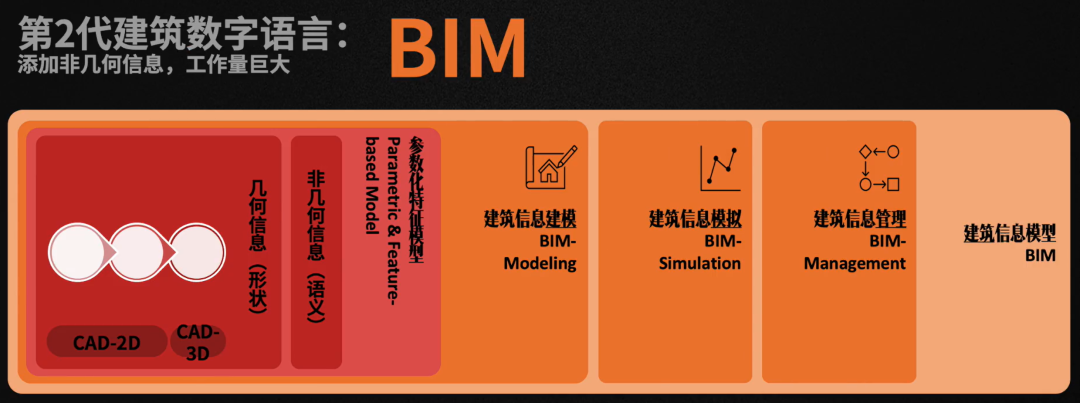 建筑行业的数字化就是典型案例,从 CAD 到 BIM 再到 AIGC,目的是打通上游的设计到下游的施工各环节,大家在一个数据模型下协作,同时用机器自动化代替人工。